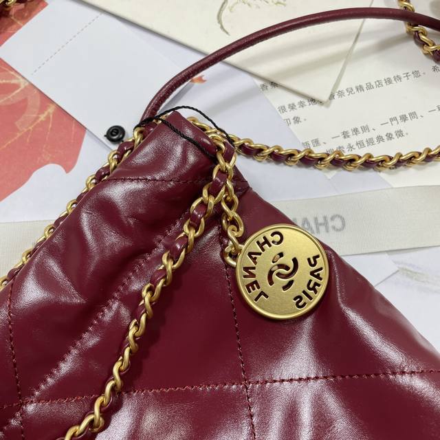 新款现货!!酒红配金!Chane123S3980香奈儿的Mini22击中红心了