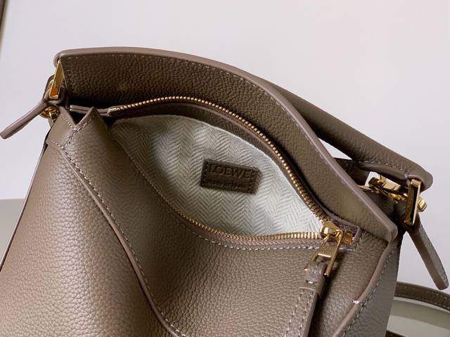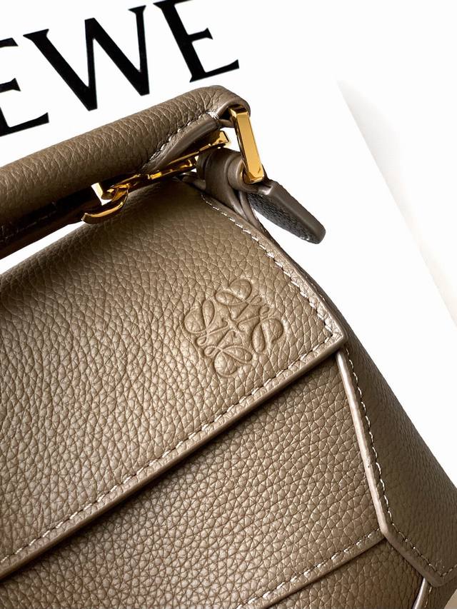 爆款新版本几何包迷你18Cm原厂进口荔枝纹小牛皮Puzzle手袋是创意总监乔纳森.安德森为 L0Ewe 推出的首款手提包长方体形状和精确的切割技术创造了 Puzzle 独特的几何线条。这个迷你版本采用经典牛皮革制成迷你 Puzzle 可以容纳例如一只小号垂直钱包、大多数尺寸的手机 最大6.1英寸 和太阳镜盒斜挎、肩背、手拿或顶部提手携带.可拆卸肩带包包自身重量几乎忽略,炒鸡实用,出门装手机小钱包口红粉饼,毫无累赘感,轻松愉快人生从此开启 你们最关心的Xs,Plus都Ok哈