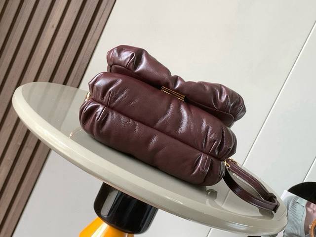 迷你闪亮纳帕羊皮革 Puffer Goya 手袋Puffer Goya 受到了 Goya 美学和关键细节的启发通过带有鹅毛衬垫的闪亮纳帕羊皮革带来了全新的感官和触觉维度配有可拆卸的金属甜甜圈链条。*肩背、磁扣“两个隔层包括一个拉链,一款很特别的包包口袋和一个贴袋,纳帕羊皮革衬里一款很特别的包包Puffer Goya好肥好胖软嘟嘟的 Goya 太可爱啦手感无敌,真心好看!云朵包胖嘟嘟软Fufu的超级可爱抱枕一样的软糯手感超好Rua配有甜甜圈一样的金属短链条不累肩舒适指数满分