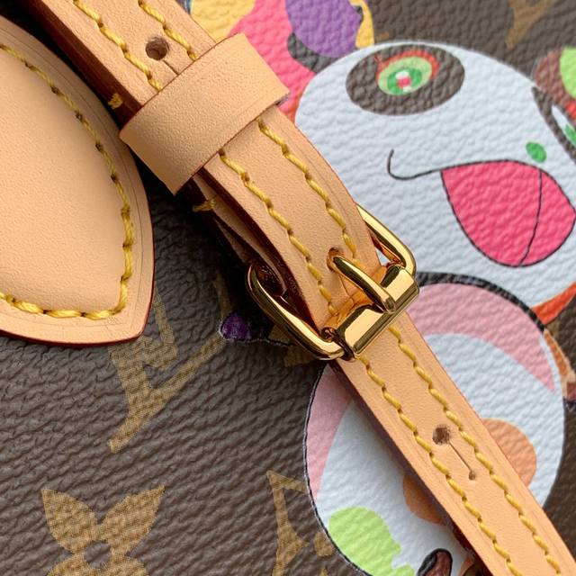 路易威登 X 村上隆再版系列以玩味笔触演绎 Onthego 手袋的玲珑版本。Monogram 帆布与牛皮革奠定品牌经典格调,村上隆笔下灵动可爱的熊猫形象化身为前后印花。可拆卸并调节的肩带提供多种背携选择,拉链内贴袋令个人物品稳妥随行。