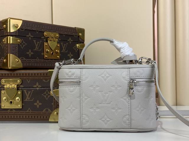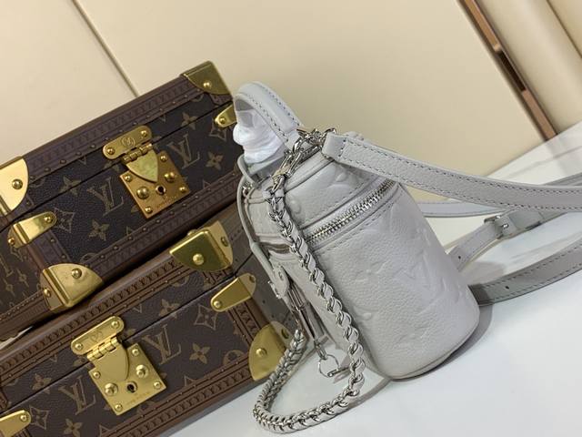 本款 Vanity Chain Pouch 手袋为经典 Monogram Empreinte 皮革渲染潮流色彩,再以 Lv 铭纹挂锁和钥匙包传递品牌旅行精神。别致设计可轻松融入各式造型。