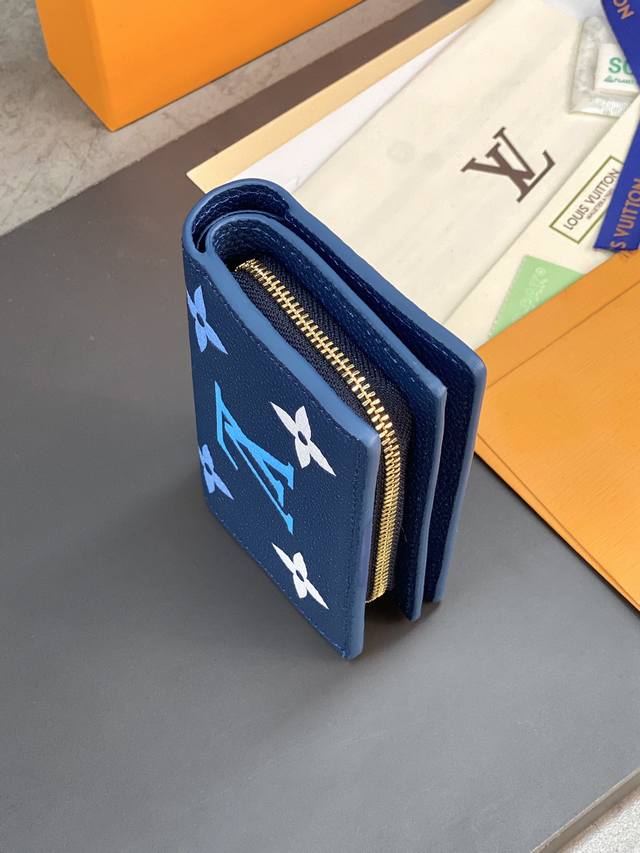 p350 顶级原厂 M82329 蓝色丝印CléA钱夹采用Monogram Empreinte柔软粒面牛皮制成,饰有路易威登标志性Monogram图案。这种型号以其时尚的设计著称,既紧凑又宽敞。它有一个外袋,一个拉链硬币袋,一个纸币隔层和六个卡槽 Size:11X8.5X3.5Cm。
