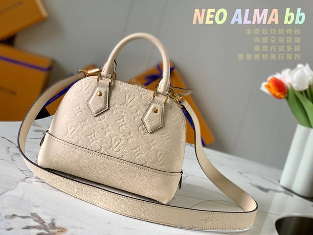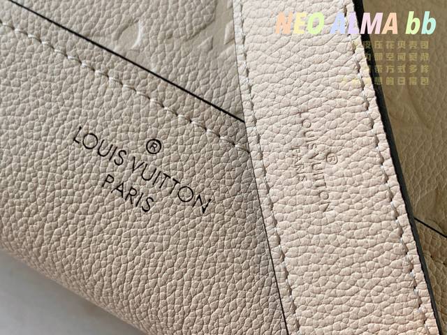 neo Alma Bb浮雕Empreinte皮革有一个柔软,柔软的感觉内里层与鲜明的颜色。这款休闲包非常轻薄,全皮压花贝壳包 内部空间宽敞,携带方式多样,是最理想的日常包。签名者是路易威登标志性的挂锁和钥匙铃。 详细特点25.0X18.0X12.0 Cm