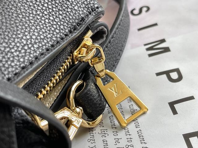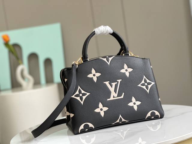 p720顶级头层,动态芯片,M58913.M58914Petit Palais 手袋为粒面皮革压印超大 Monogram 花卉和 Lv 字母,再以挂锁和皮革名牌