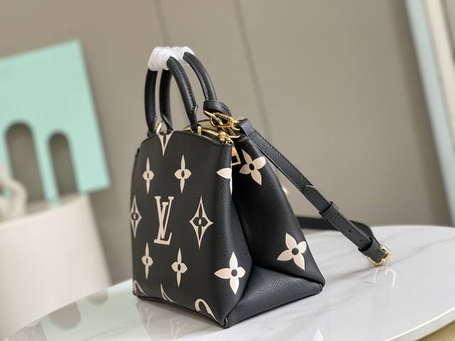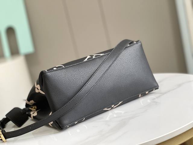 动态芯片 M58163 黑压花 顶级原单 独家背景实拍 本款 Handle Soft Trunk 手袋为 Monogram 皮革压印细腻纹理,以铆钉边角和皮革加