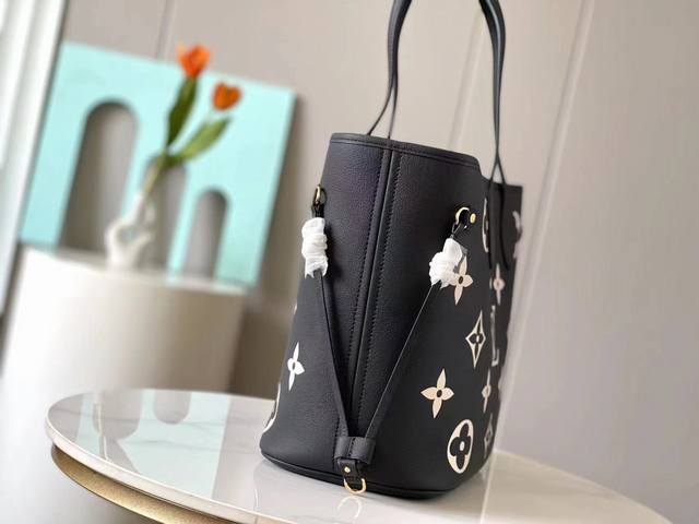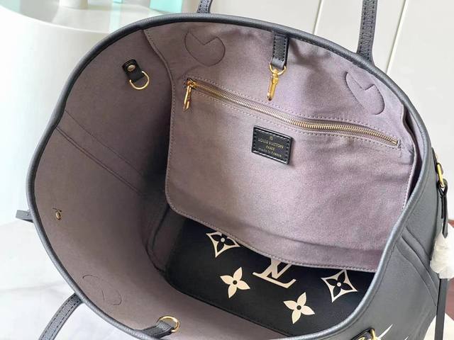 p730顶级原单58907.45685.动态芯片本款 Neverfull 中号手袋为 Monogram Empreinte 粒面牛皮革压印 Giant Monogram 图案,利用皮革绳将可拆卸零钱袋固定于宽敞内里。放松侧面束带,令紧凑构型化身休闲托特包。31 X 28 X 14 厘米(长度 X 高 X 宽)