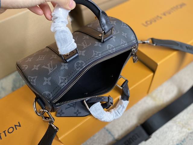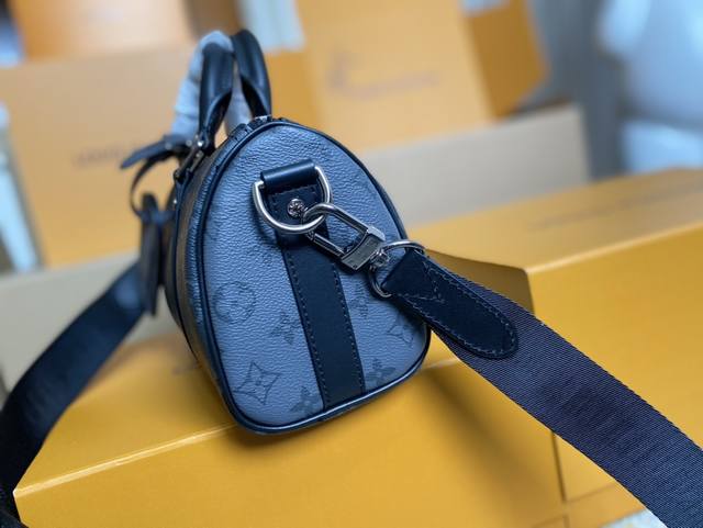 / 590 顶级原单 M46271 本款 Keepall 25 手袋取材 Monogram Eclipse Reverse 帆布,展现路易威登经典图案的优雅重绎。加
