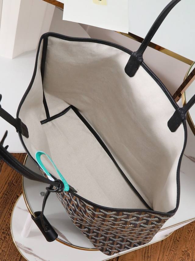 【特级品质 原厂料】P720 Saint Louis 小号购物包,采用 Goyardine 帆布制成,无衬里,柔软而轻盈,可双面使用,正面为 Goyardine 帆布材质,另一面为棉麻针织材质。两个皮革提手从细变粗,支持多种背法。它带有一个可拆卸内袋,挂在包的一个提手上,方便快速取用。