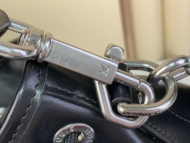 本款 Noé Cargo 小号水桶包为牛皮革注入锦纶般的炫目光泽,以金属 Lv 字母和珠链点亮细节,搭配宽敞前袋和织物内衬。