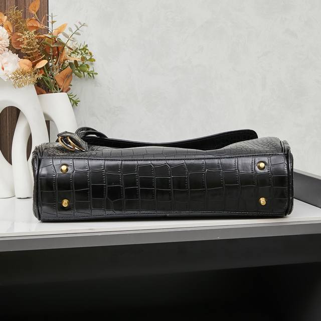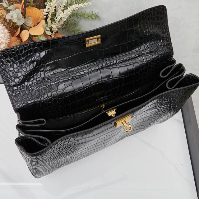 大号鳄鱼纹批420配盒子Balenciaga巴黎世家!Rodeo系列||最新款Balenciaga巴黎世家!Rodeo系列!最新款 手提包 斜挎包!100%意大利进口黑色光滑牛皮!皮质超级柔软细腻!饰以做旧金色金属配件!可拆卸皮革钥匙环 两个扣环 转锁开合!宽大正面口袋 1个主隔层 1个内部拉链口袋 2个背面平袋 侧面按扣 4个黄铜护脚 !Nappa羊皮衬里!肩带可拆卸!细节完美!尺寸36X26,型号6876