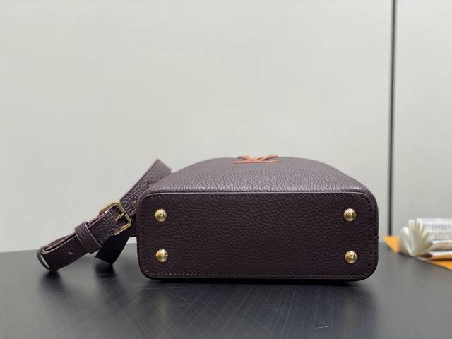 原单精品 M12952咖色拼色 全皮Cap那英款 Capucines 迷你手袋 本款 Capucines 中号手袋为华美 Taurillon 牛皮革渲染新季典雅
