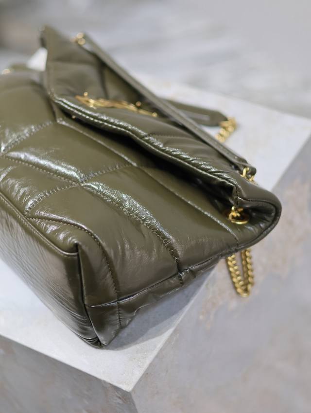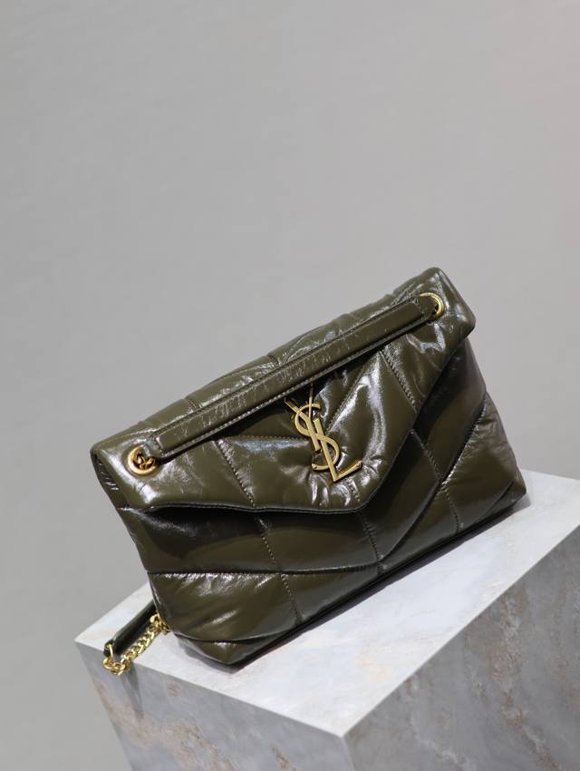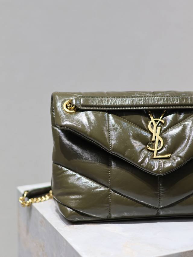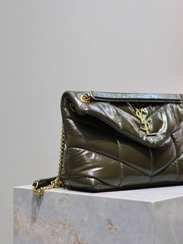 Loulou Puffer_绗缝油蜡皮链条包,100%小牛皮制作,手感柔软细腻,犹如怀抱云朵般的感受;经典的Y家Logo、链条及扣眼五金均采用做旧金属材质,复古的质感及其别致.
