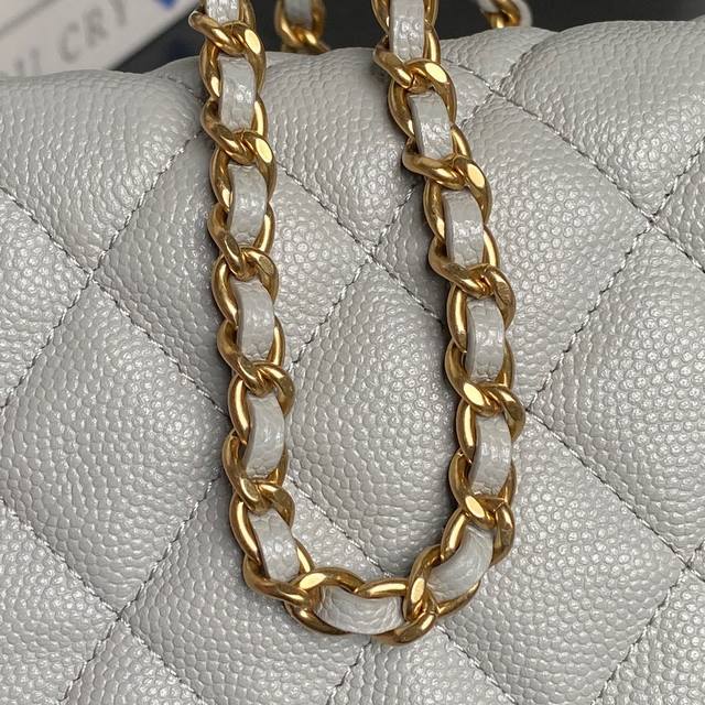特级芯片版 独家实拍,品质稳定 全新版本回归, 原厂双金珠口盖包 白色 Chanel 双金球 小牛皮手感光滑细腻皮质自带光泽感...