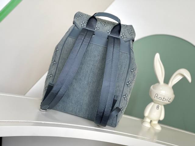 最新Montsouris 褪色丹宁布双肩背包 M22534 ,褪色丹宁布Monogram 图案压印,牛仔布面刺绣浮雕,抽绳收拢,复古标签,复古个性设计!尺寸:3