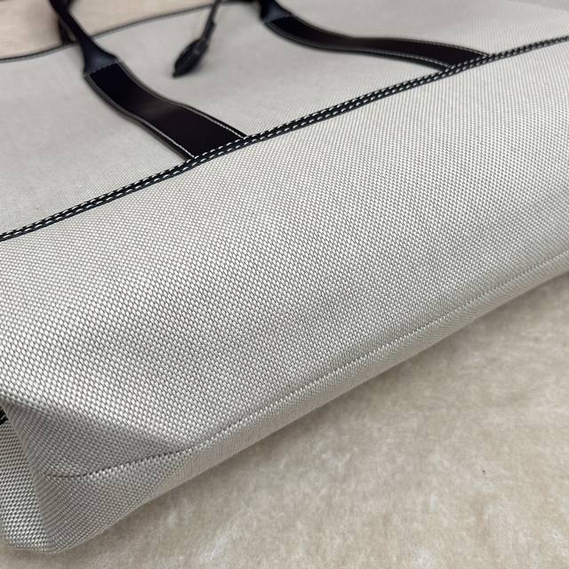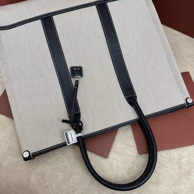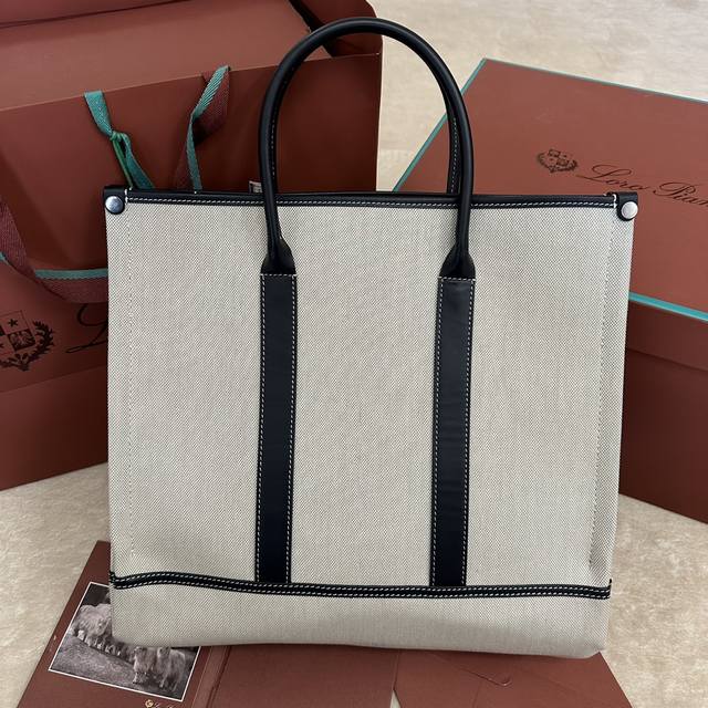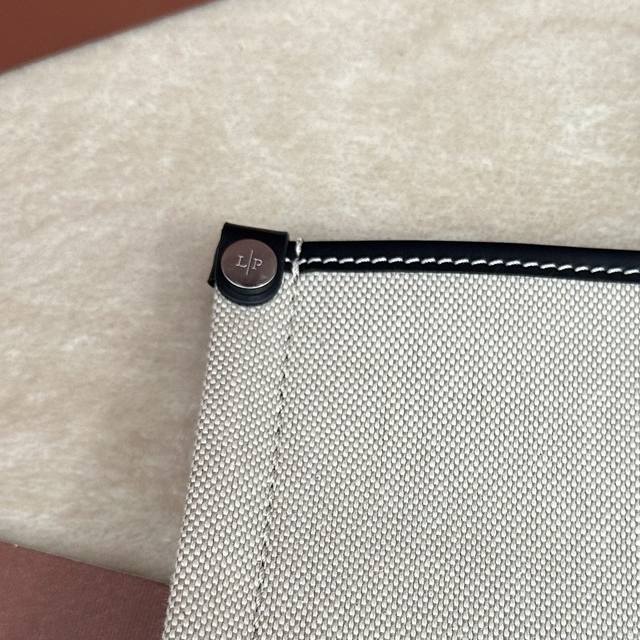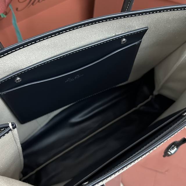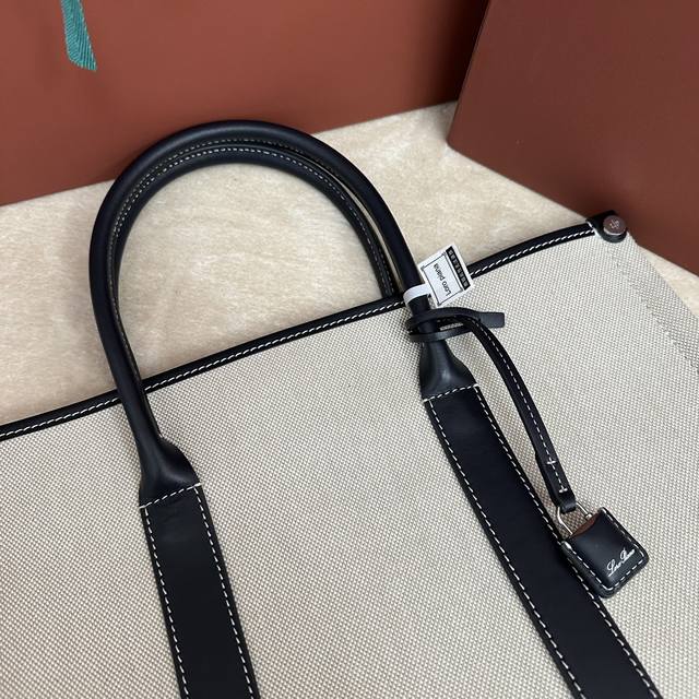 这款手袋以织机的重要部件“织轴” Beam 命名,向Loro Piana丰富的纺织传统致敬;其可伸缩底座的设计灵感源自织轴本身的形状,可调节体积,皮革手柄,绒面革衬里。可拆卸挂环,配以饰有徽标的皮革包覆挂锁吊饰炮铜色金属配件,皮革口袋,饰有压印徽标和Lp铆钉,同色系缝线。