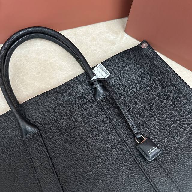 本款只配礼品袋木球 Loro Piana Beam 小号托特包 黑色 这款手袋以织机的重要部件“织轴” Beam 命名,向Loro Piana丰富的纺织传统致敬