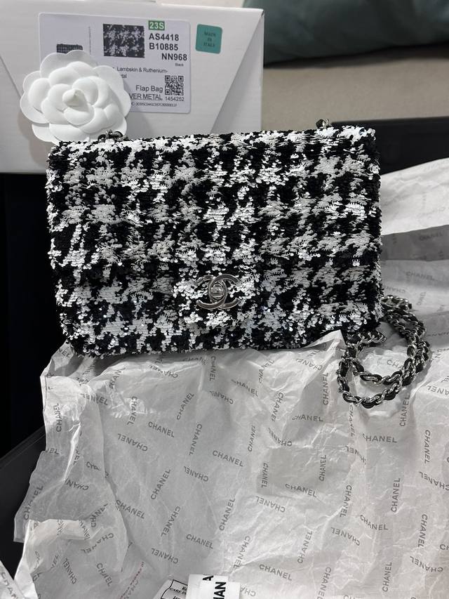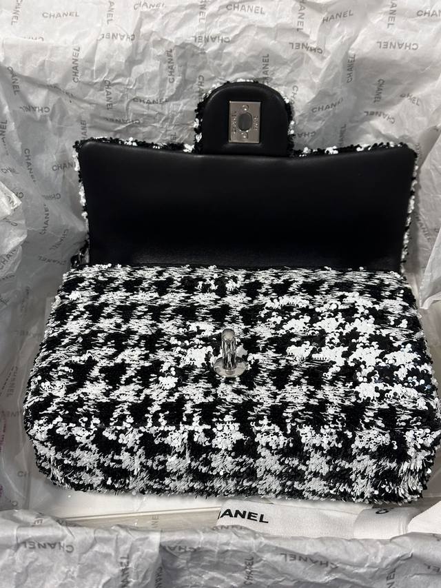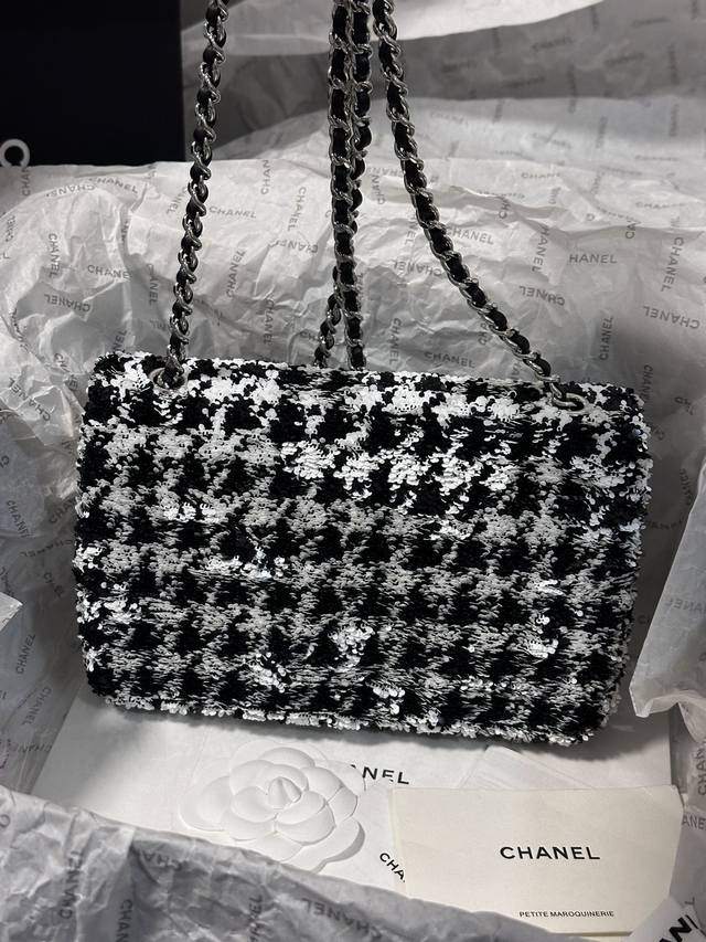 / Chanel 24A 高级手工坊飞鸟格 珠片 C F 黑与白亮片 美呆了!时髦洋气十足 20Cm