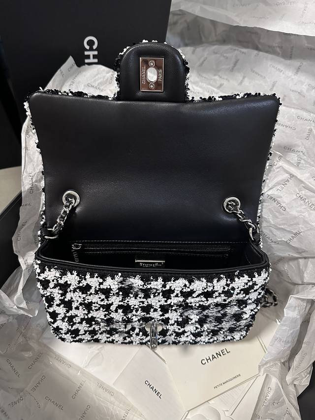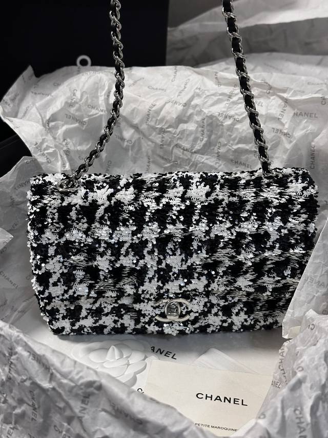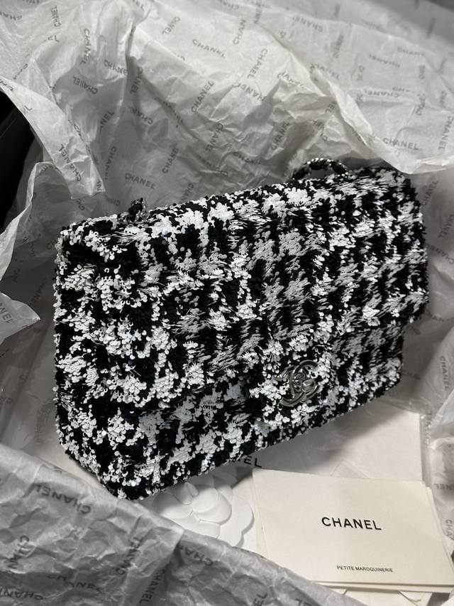 Chanel 24A 高级手工坊飞鸟格 珠片 C F 黑与白亮片 美呆了!时髦洋气十足 20Cm