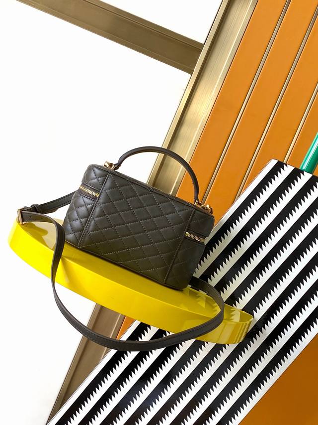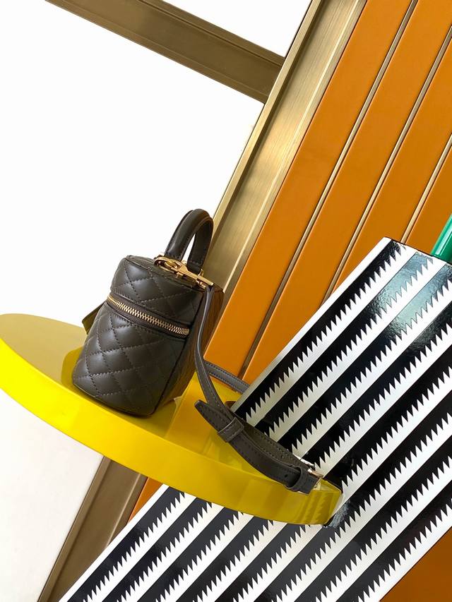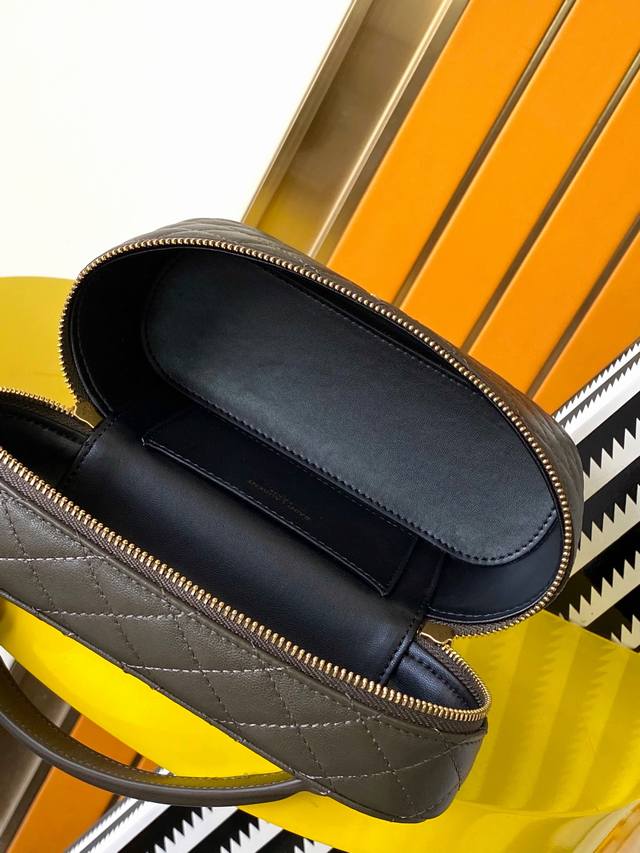 最新爆款羊皮革肩带手拿包化妆包到货!环绕式拉链手拿包,饰以 和菱形绗缝包缝、羊皮内衬、古铜色配件拉链开合一个卡片槽位、此款多功能单品配有皮革顶部提手和可调节可拆卸肩带、可肩背或斜挎!