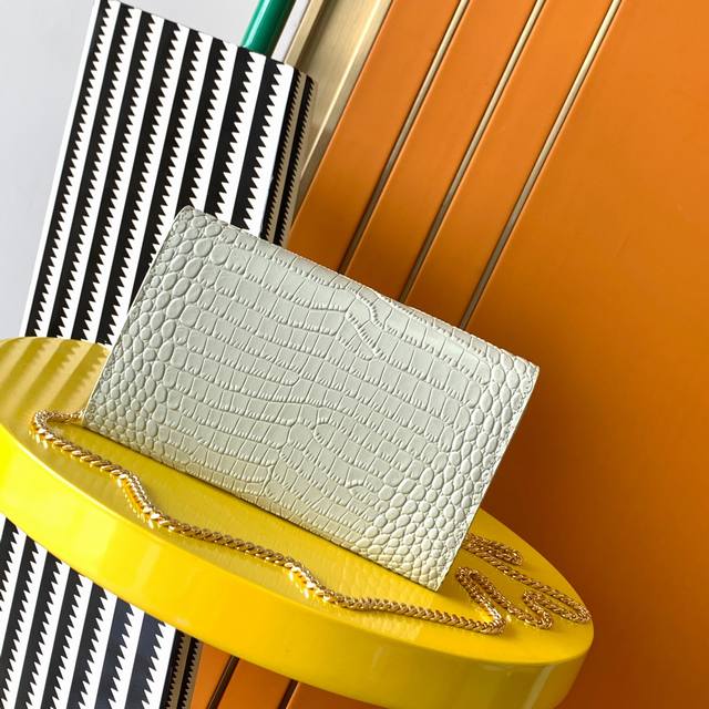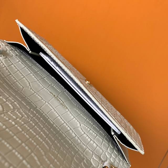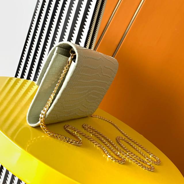原厂皮 Uptown_迷你信封包_经典的标志性金属logo,可拆卸链条肩背带,拆卸后可直接当手包!此款还配有一个小卡包,可以放4 5张卡片以及零钱!真正做到一包多用。意大利进口牛皮鳄鱼皮纹,肩带48Cm!虽然小确能装3部plus手机,实用率开发至百分百!型号:607788 尺寸:19X12X4Cm