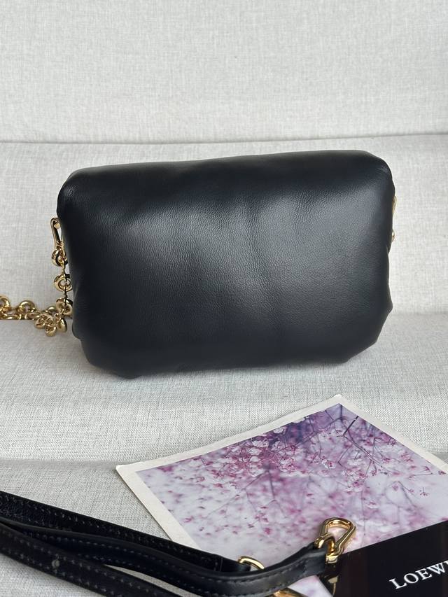 Goya Puffer 受到了 Goya 美学和关键细节的启发,通过带有鹅毛衬垫的闪亮纳帕羊皮革,带来了全新的感官和触觉维度。 这个迷你版本采用闪亮纳帕羊皮革制成,配有可拆卸和可调节带子+金屬鏈條