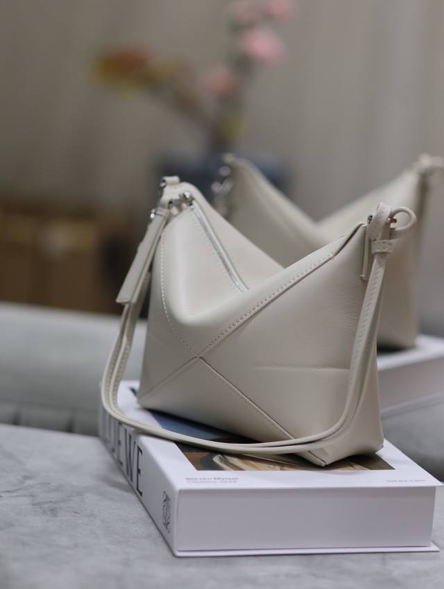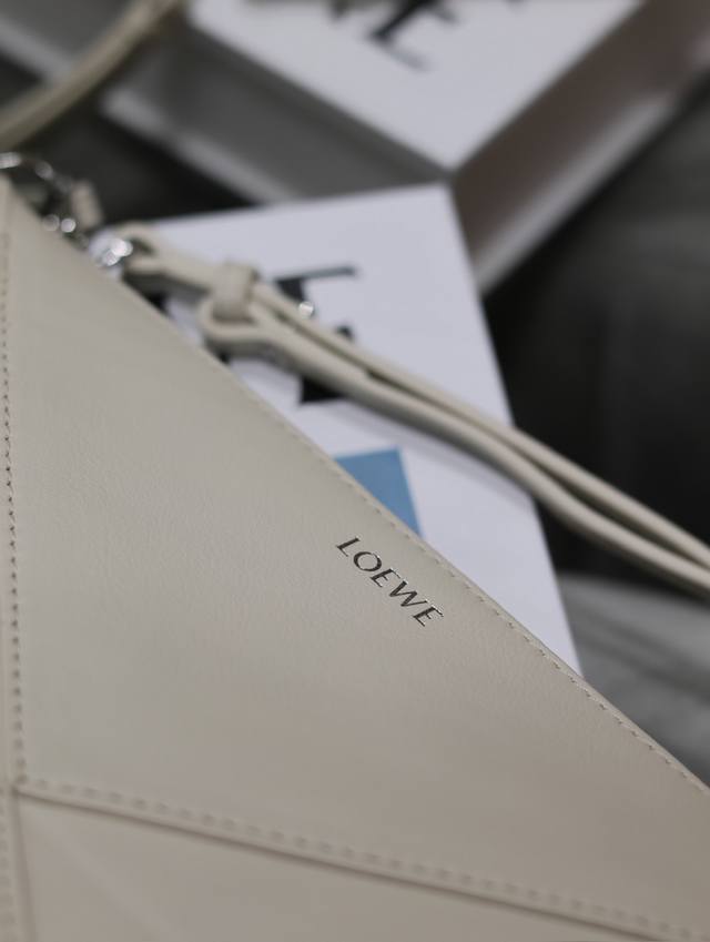 Lewe 亮面纳帕牛皮革 Puzzle Fold 手拿包 海盐白