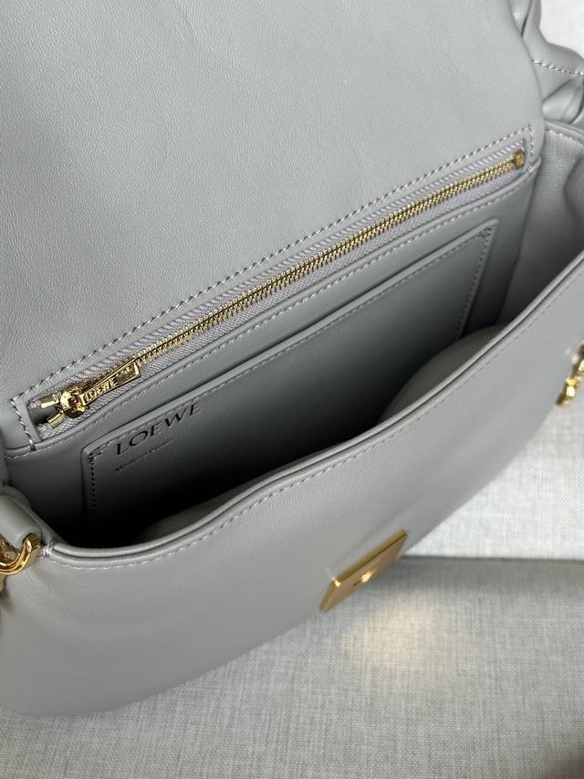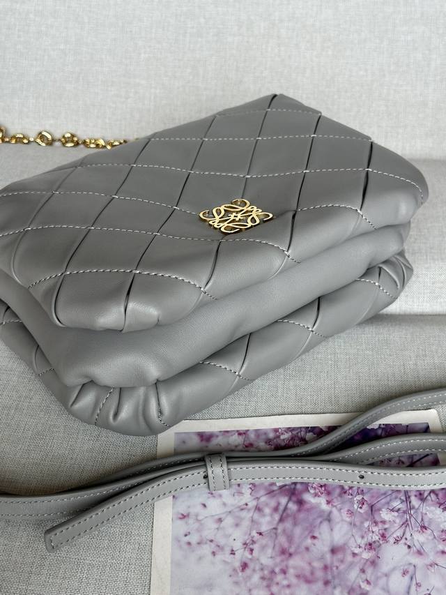 复褶闪亮纳帕羊皮革 Puffer Goya 手袋珍珠灰