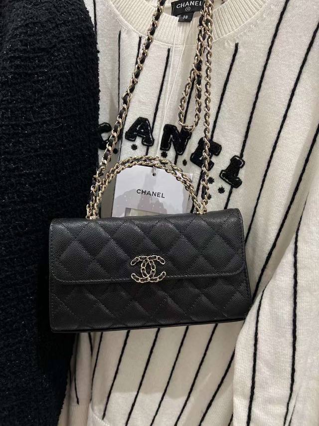 Chanel 23P新款手柄链条包 进口荔枝纹牛皮 背面还有一个口袋,特别好看! 尺寸:10*18*4.5Cm