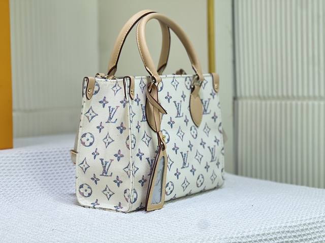 / M24708 M46373白色牛仔提花 长肩带 质量全面升级 独家实拍背景图、 Onthego 中号手袋将经典 Monogram 帆布与 Monogram Re