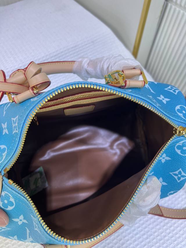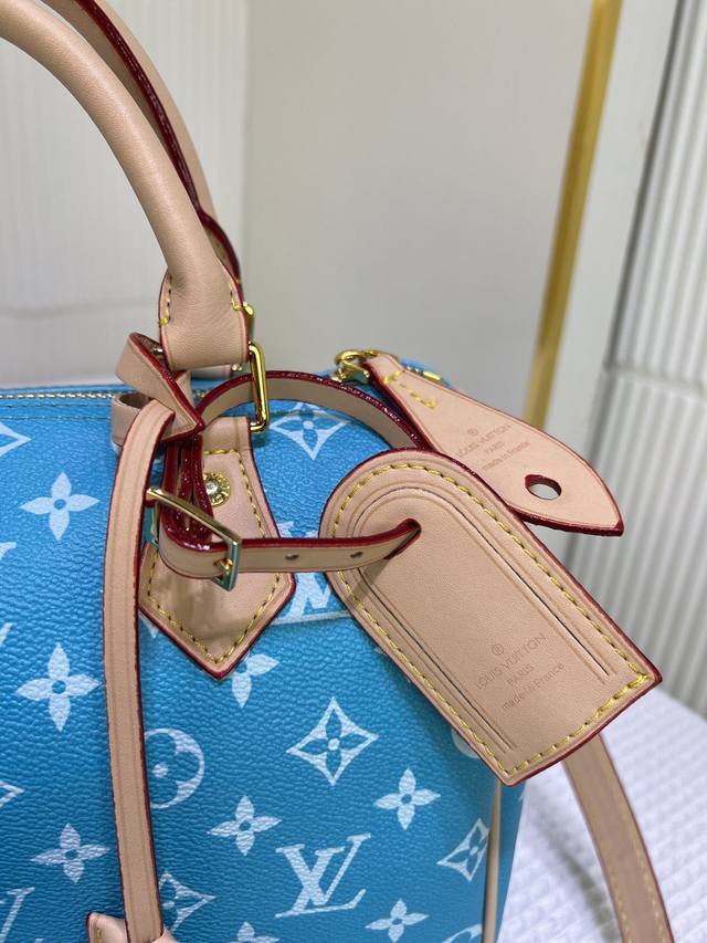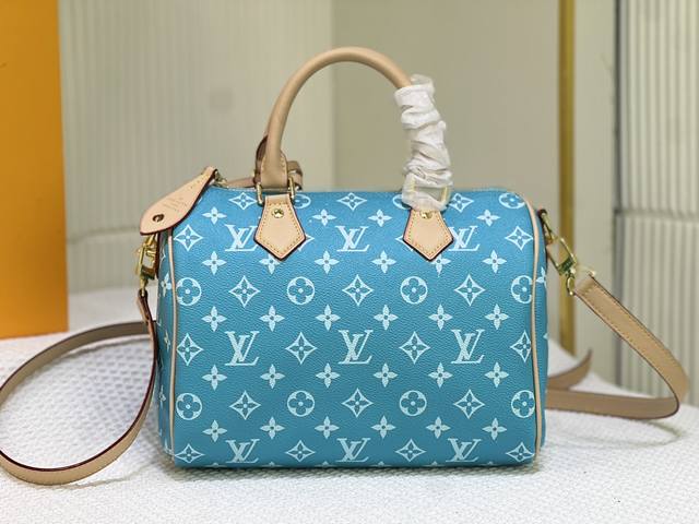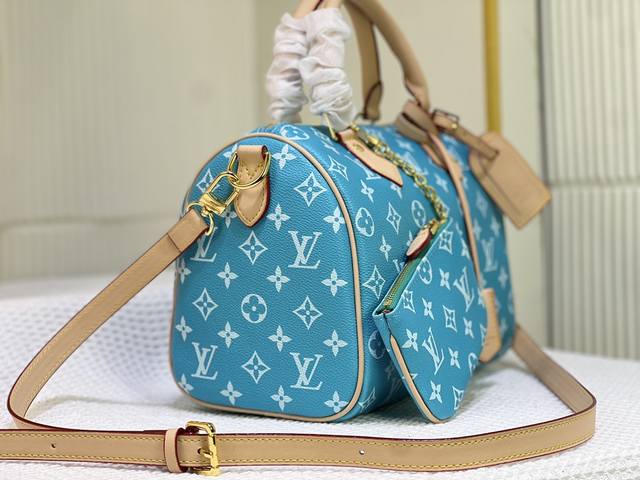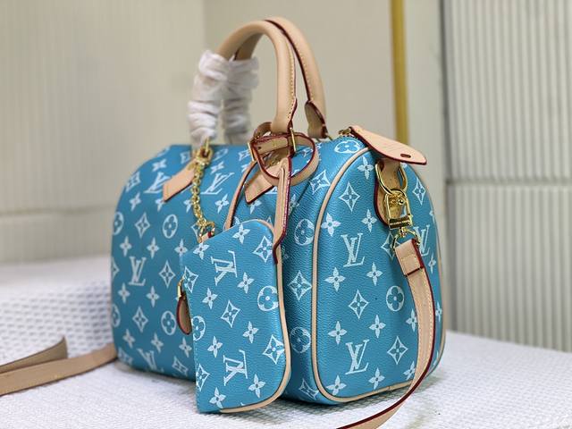 M24425 M24424本款 Speedy P9 Bandoulière 25 Monogram Leather 手袋选用柔软牛皮革,以 Monogram 图案重现帆布印花的考究观感。耀目金属件、羊皮革内衬和铭牌共同印证创意总监 Pharrell Williams 对细节的不懈追求。尺寸:25X15X15