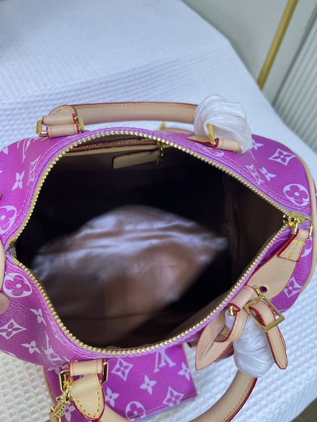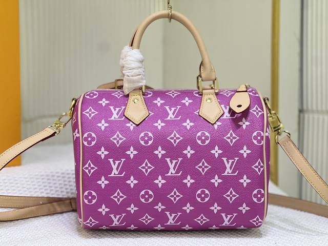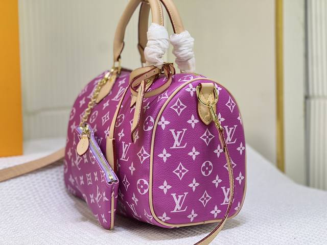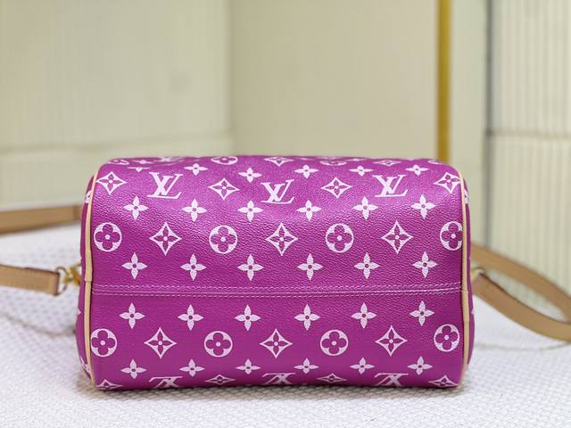 M24425 M24424本款 Speedy P9 Bandoulière 25 Monogram Leather 手袋选用柔软牛皮革,以 Monogram 图案重现帆布印花的考究观感。耀目金属件、羊皮革内衬和铭牌共同印证创意总监 Pharrell Williams 对细节的不懈追求。尺寸:25X15X15