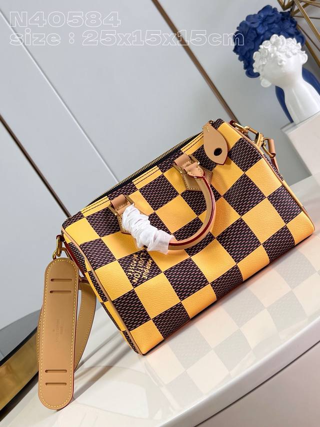/ 顶级原单独家实拍 N40584黄 本款 Sedy Bandoulière 25 手袋承袭经典 Sedy 手袋构型,以柔软 Damier 涂层帆布勾勒梯形线条。明