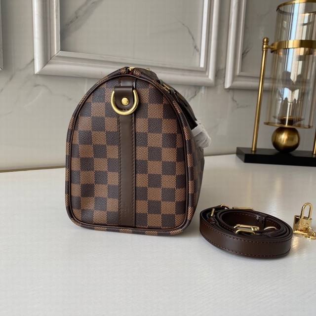 / 复刻版 N41368 啡格枕头包 这款speedy 25 最初在 1930 年是为旅行者而设计,配有斜背用包带,内袋有拉链,进口台湾面料 进口牛皮尺寸:长25