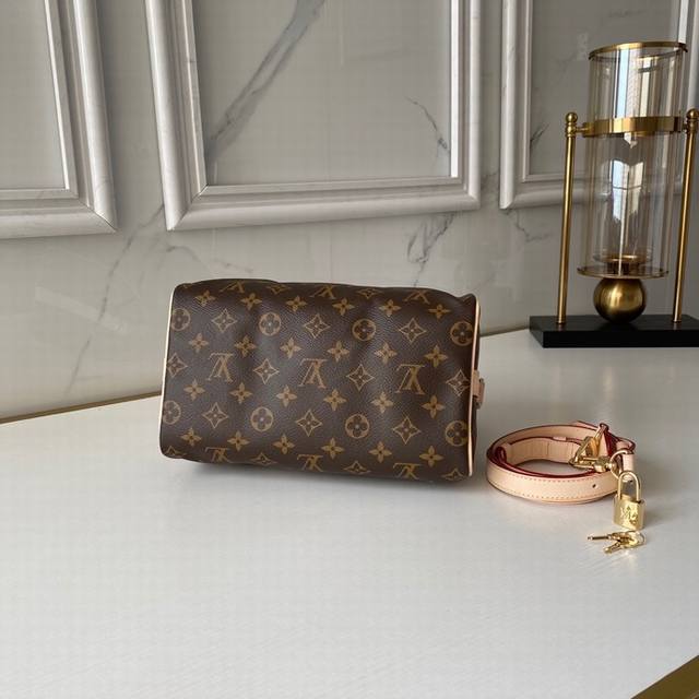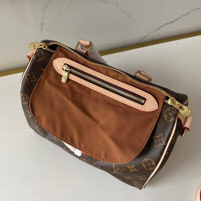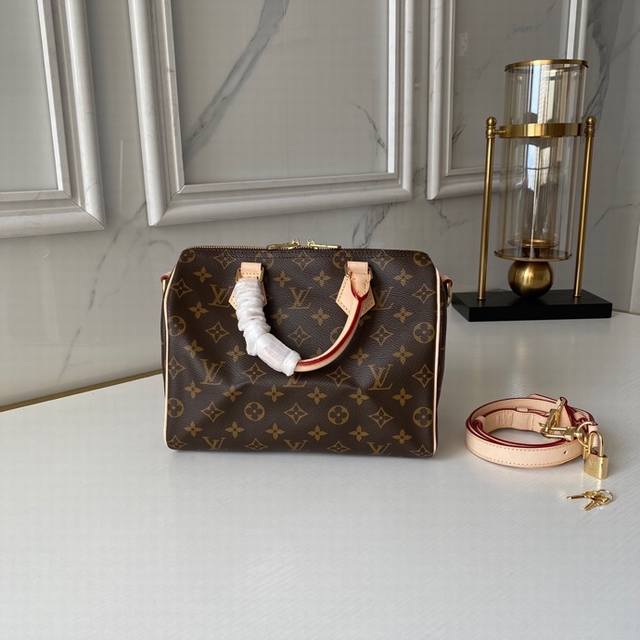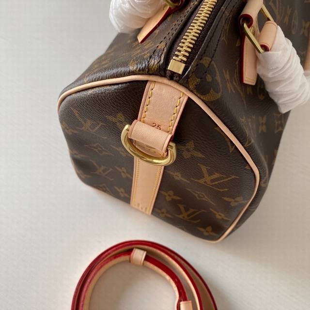 / 复刻版m41113 枕头包 这款speedy 25 最初在 1930 年是为旅行者而设计,配有斜背用包带,内袋有拉链,进口台湾面料 进口牛皮尺寸:长25 X 高