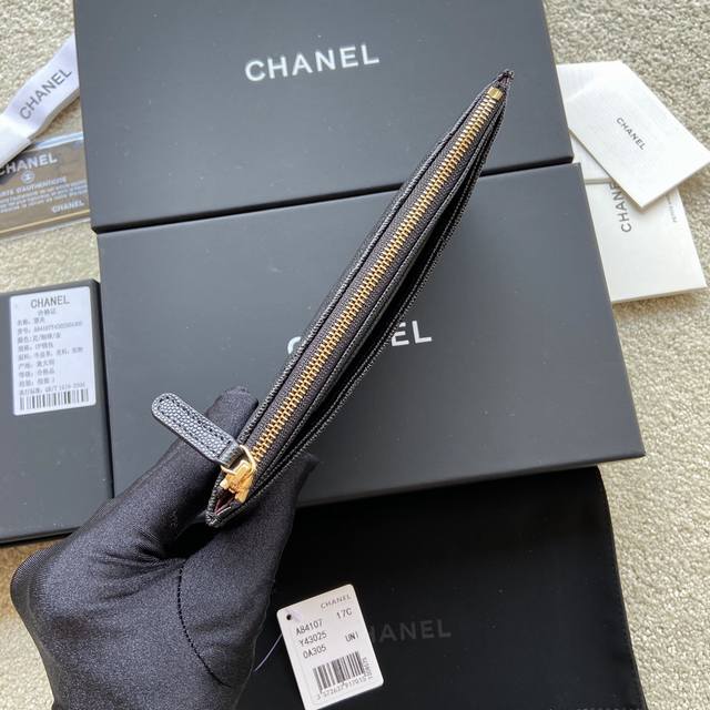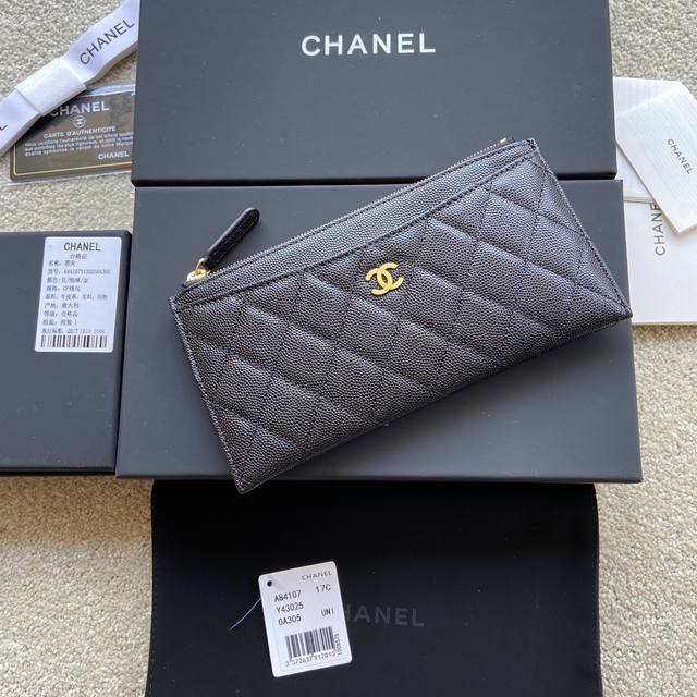 / 小香进口意大利颗粒牛皮 货号:A84107 尺寸:W19.5×H10×D2 颜色:黑色球纹金色钢唛