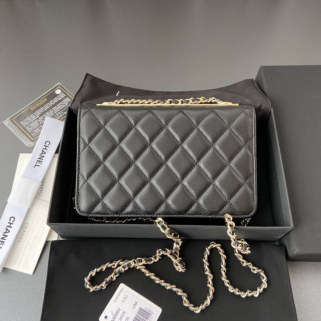 / 小香进口意大利小羊皮 货号:A80982 尺寸:W13×H19.5×3.5Cm 颜色:黑色小羊皮金色钢唛