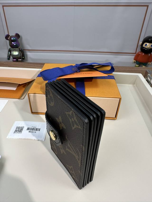 M80878 特级正品 本款卡夹采用经典 Monogram 帆布和牛皮饰边,以配有路易威登铭纹按扣的皮革标签开启精巧构型,其风琴式设计便于取放银行卡、交通卡或会