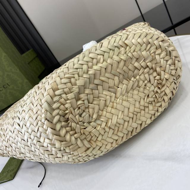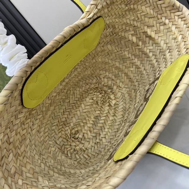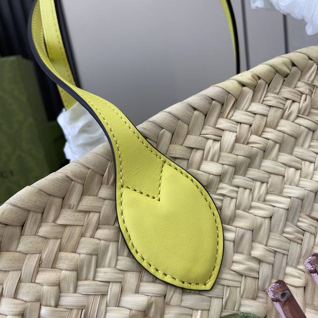 配全套原厂绿盒包装 新品 饰gucci标识迷你草编托特包。这款单品出自gucci Lido系列,设计灵感源自意大利海岸的夏日风情和海滩俱乐部。品牌草编配饰以明艳色调和经典图案,为传统材质汇入盎然新意。这款迷你托特包以原色为底色,匠心融蕴黄色皮革包带。品牌名称以多色树脂玻璃细节焕新呈现,巧妙呼应温暖宜人的天气。原色草编,黄色皮革滚边,多色树脂玻璃gucci标识,无衬里,肩带 19.5厘米高 。