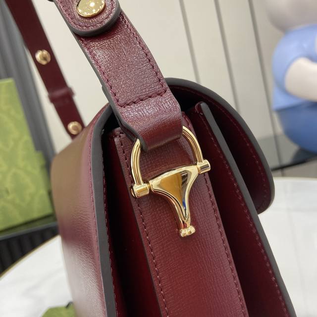 配全套原厂绿盒包装 新品 Gucci Horsebit 1955系列肩背包。Gucci Horsebit 1955系列肩背包在2020早春系列中惊艳亮相,以新颖视角演绎经典设计。这一手袋延用了六十余年前经典单品的线条与造型,将经典细节与现代精神巧妙融合,强调了马衔扣这一品牌标志性设计元素。灵感源自马术世界的双环和连接条两个元素构成的这一设计图案已经成为品牌耀眼的标志性元素之一。在这款小号翻盖肩背包上,这一配件与织纹酒红色皮革材质相映成趣,同时配以可调节肩带,可在肩背和斜跨之间自由转换。拥有多种穿搭方式和风