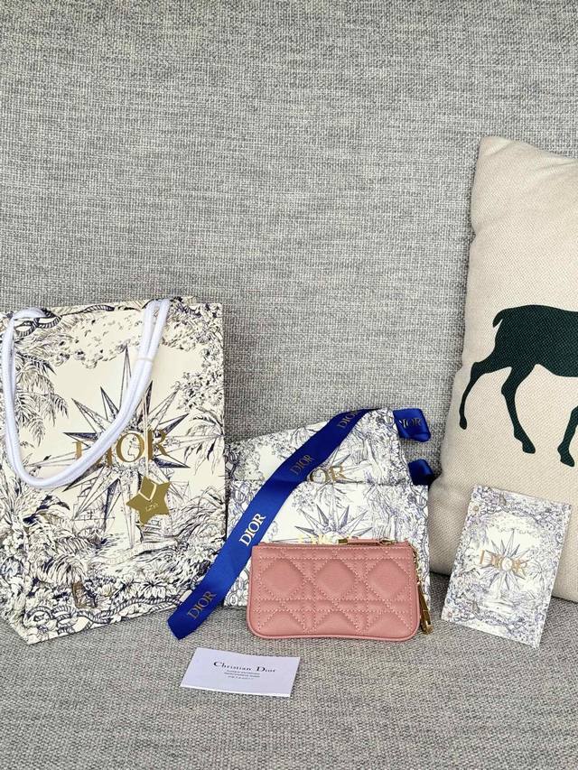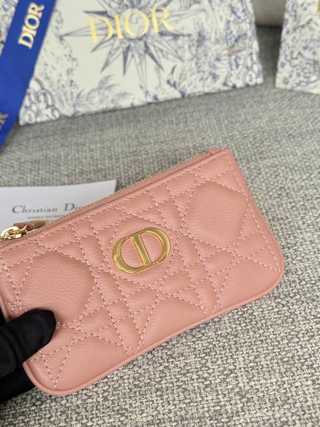 这款 Dior Caro 卡夹优雅实用。采用柔软牛皮革精心制作,饰以藤格纹缉面线,正面点缀以cd标志提升格调。高雅精致。