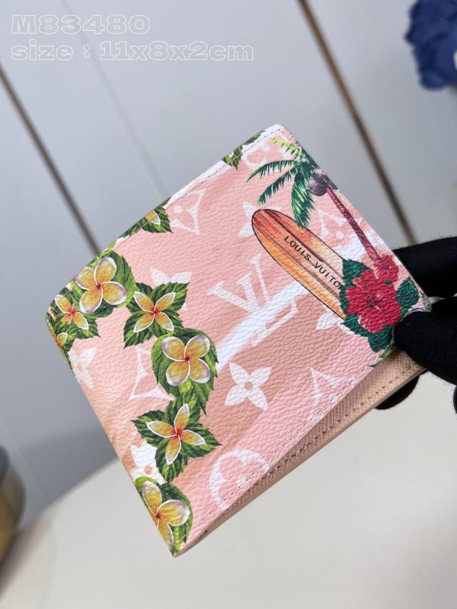 / 顶级原单 独家实拍 M83480杏 本款slender钱夹取材 Monogram Surfin’ 涂层帆布,以热带元素和品牌经典标识交叠缤纷图案,为标志性单品注