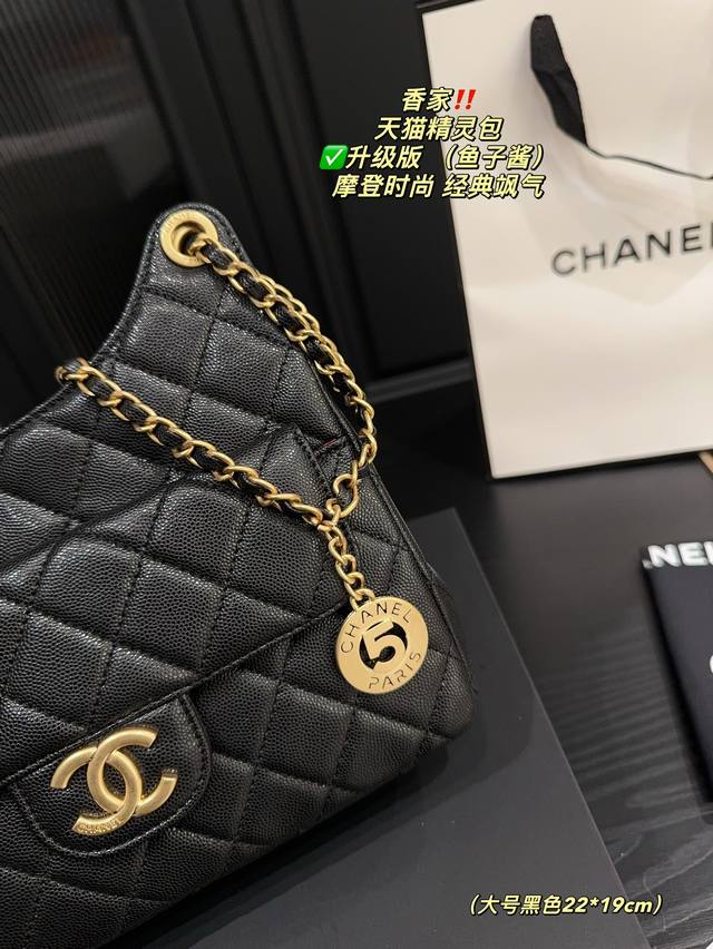 / 升级版 鱼子酱大号 全套包装尺寸22.19 小号 全套包装尺寸18.16 香奈儿 天猫精灵包 鱼子酱小牛皮背心包上线 好可爱的立体5号吊坠 外隔层放纸巾充电宝完