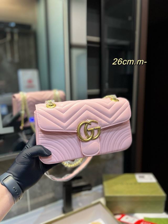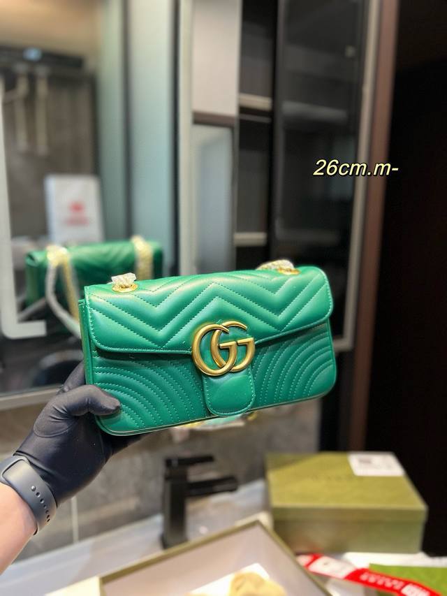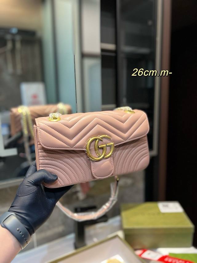 Gucci古奇 经典百搭款marmont 马尔蒙马蒙太适合春夏啦 单肩包斜挎包女包 美到无法无天的款式 今年简直引领时尚最in元素 做了几个月的款,质量一直在升级尺寸:26Cm