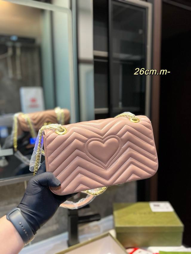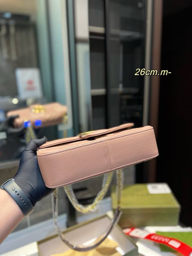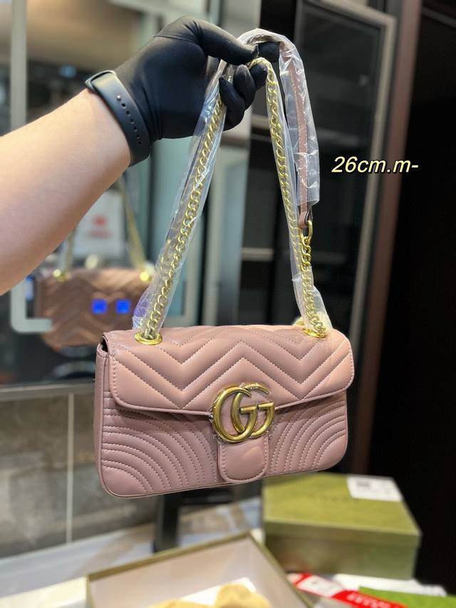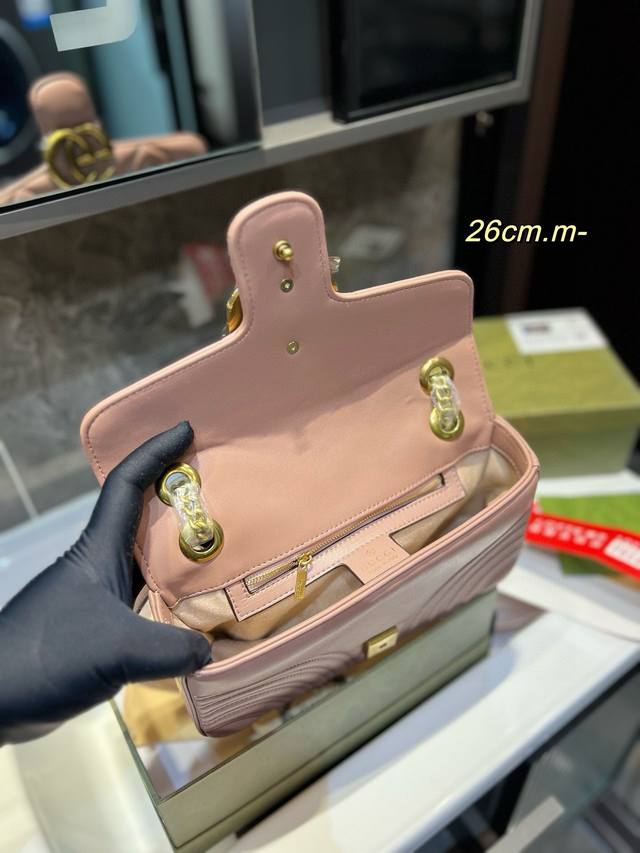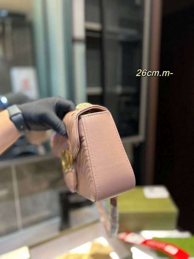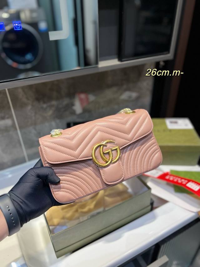 Gucci古奇 经典百搭款marmont 马尔蒙马蒙太适合春夏啦 单肩包斜挎包女包 美到无法无天的款式 今年简直引领时尚最in元素 做了几个月的款,质量一直在升级尺寸:26Cm