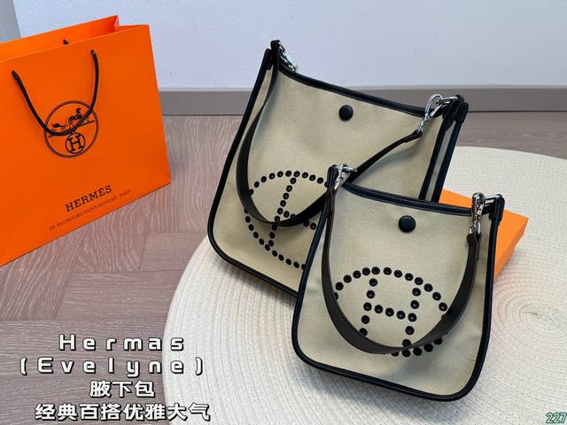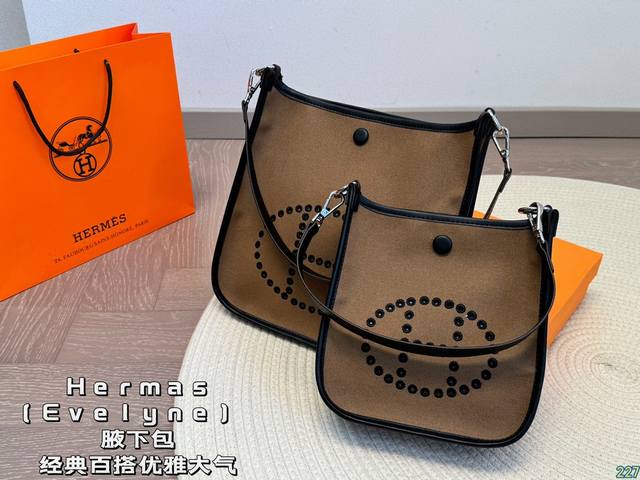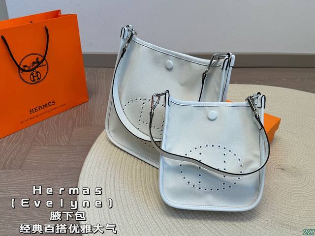 爱马仕hermas伊芙琳 Evelyne 腋下包 爱马仕最小资的包袋,便宜又实用的一款斜挎包,适合小资白领女性,质量优异,穿孔h造型比较独特,辨识度也很高。大号性价比极高,背起来很有范儿价格好 尺寸 28 28 20 21