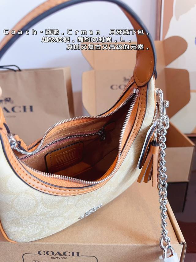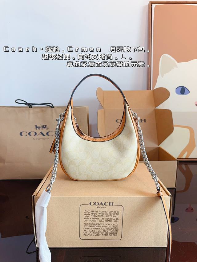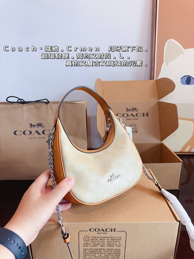配礼盒. 蔻驰coach新品腋下包 月牙包实名表白啦! 上身太绝了!大腋下包 上身又a又酷! 尺寸:30*10*21Cm