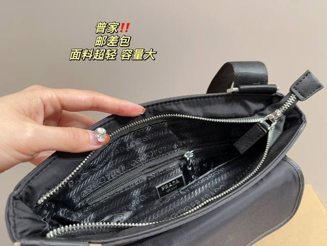轻便舒适 容量大 Prada这款尼龙邮差包真的 Yyds