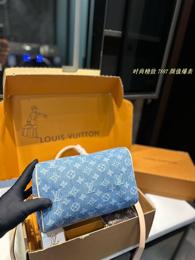 / 配送镜子钱包 Lv牛仔枕头包 春夏秀款系列,这次lv的款太可了,男女都可以背的款 ,酷酷帅帅可可爱爱~尺寸:26 19