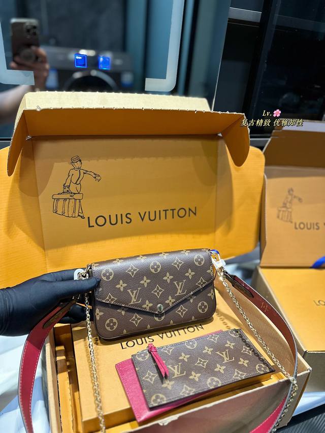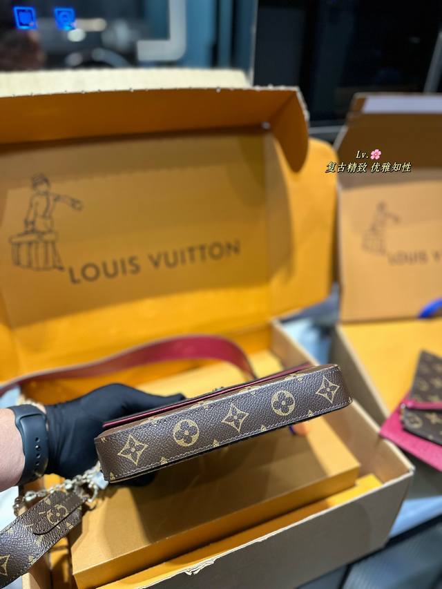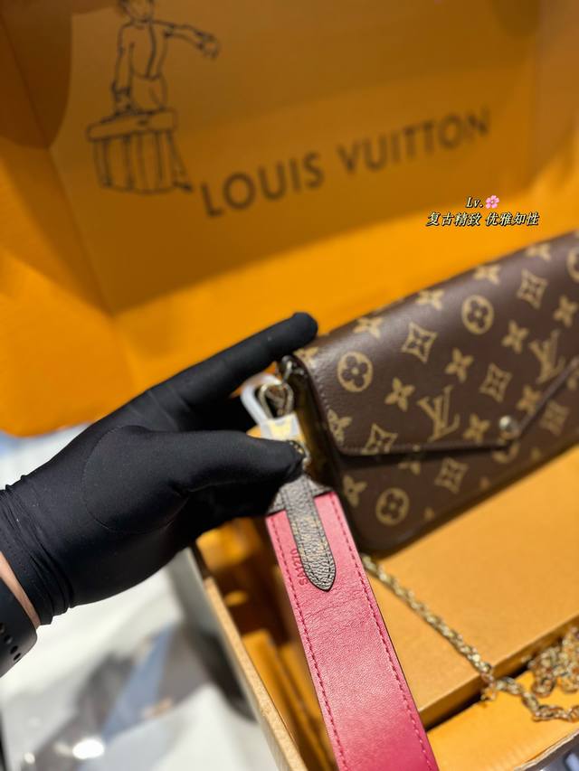 / 赠送专柜宽肩带 Lv 路易威登2024新款新款女士pochette Félicie 可拆卸金属链条包 买一得三的好事再次发生了 这款三合一链条包的设计真是大惊喜