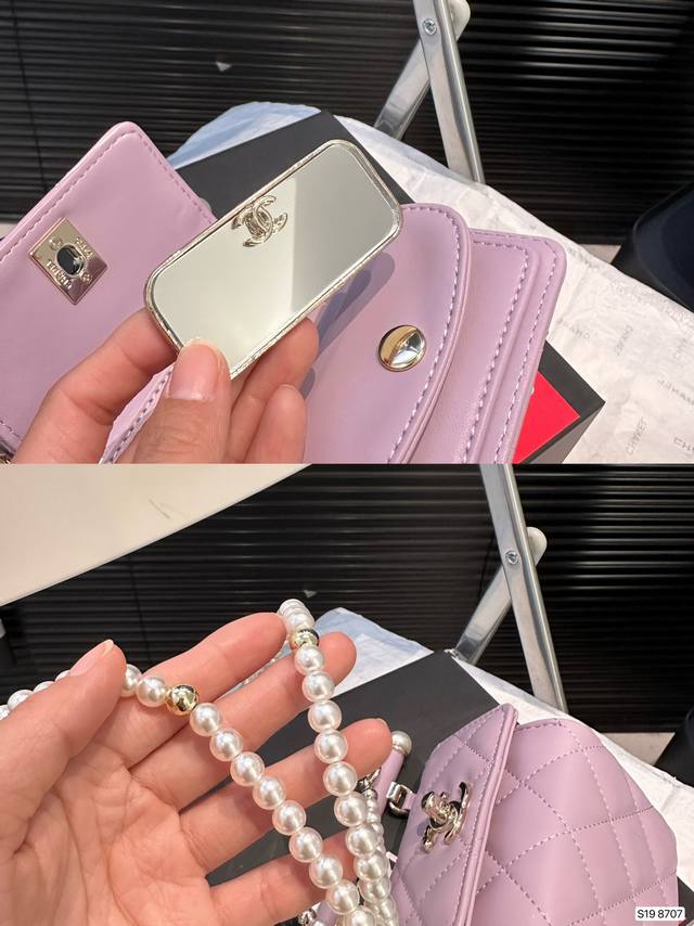 / 配折叠盒子 这期最爱的小废包。香奈儿珍珠链条的小三角包。造型独特加上珍珠链条,非常精致。尺寸:11.5 11 货号8707